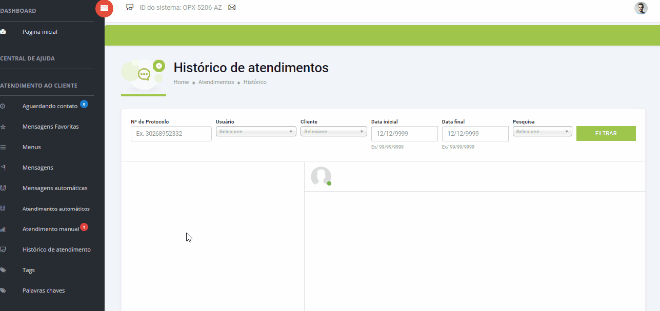 Certo, esse e o histórico dos atendimentos, que já foram realizados, agora estarei mostrando como ver os históricos de conversas com o cliente. Vamos lá.